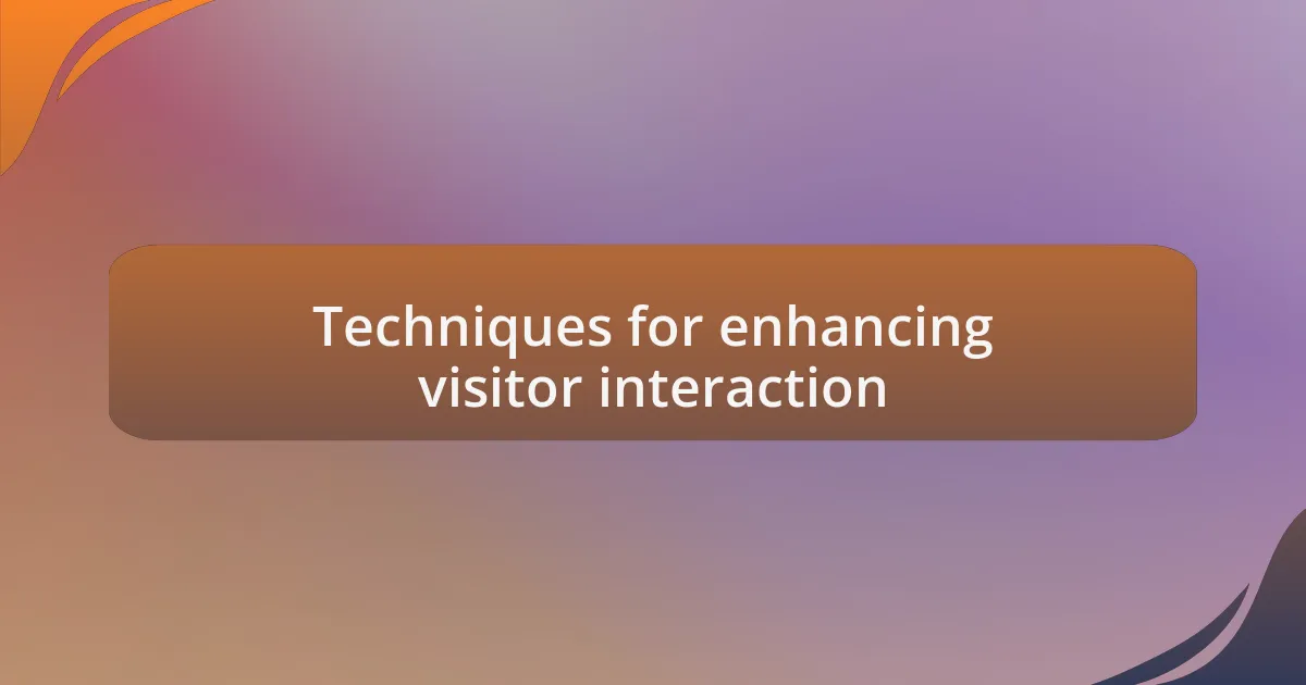 One effective technique for enhancing visitor interaction is the incorporation of interactive elements, such as touchscreens or augmented reality features. I remember visiting a design exhibition where a simple touchscreen allowed me to dive deeper into the artists’ backgrounds and their thought processes. This level of interactivity drew me in and made me feel like an integral part of the exhibit. Have you ever felt more connected to artwork when you understand the story behind it?